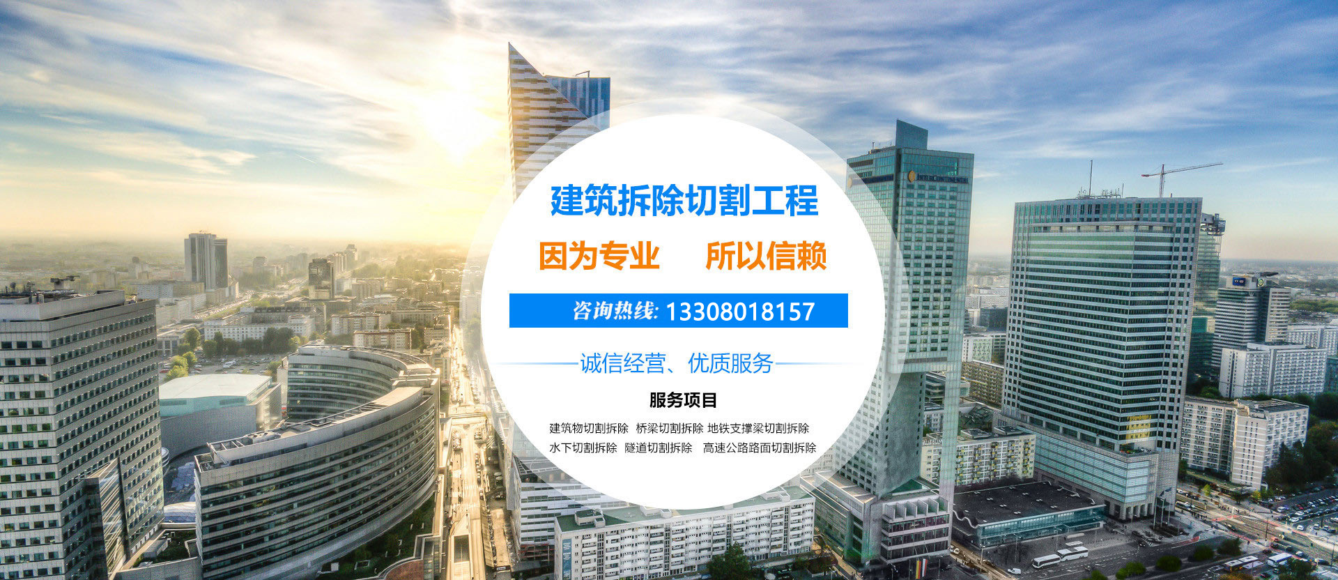 專業(yè)承接建筑物切割拆除、橋梁切割拆除、地鐵支撐梁切割拆除、水下切割拆除、隧道切割拆除、高速公路路面切割拆除等工程的鋼筋混凝土切割施工